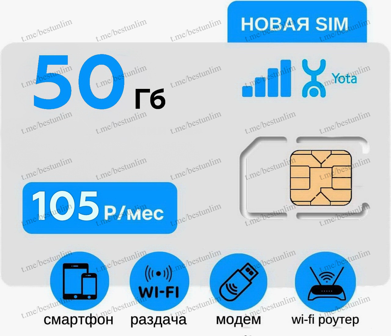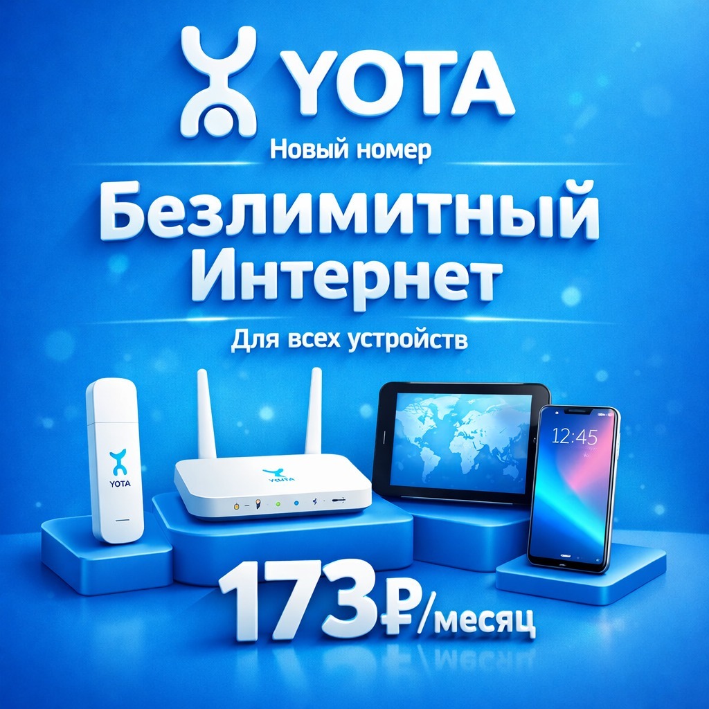 Новая сим-карта Переход от др. оператора 💳 173р/мес 🌐 Безлимитный интернет 🛜 Бесплатная Wi-Fi раздача интернет 💻 Работает в любом устройстве 📦 Получение в офисе Йота