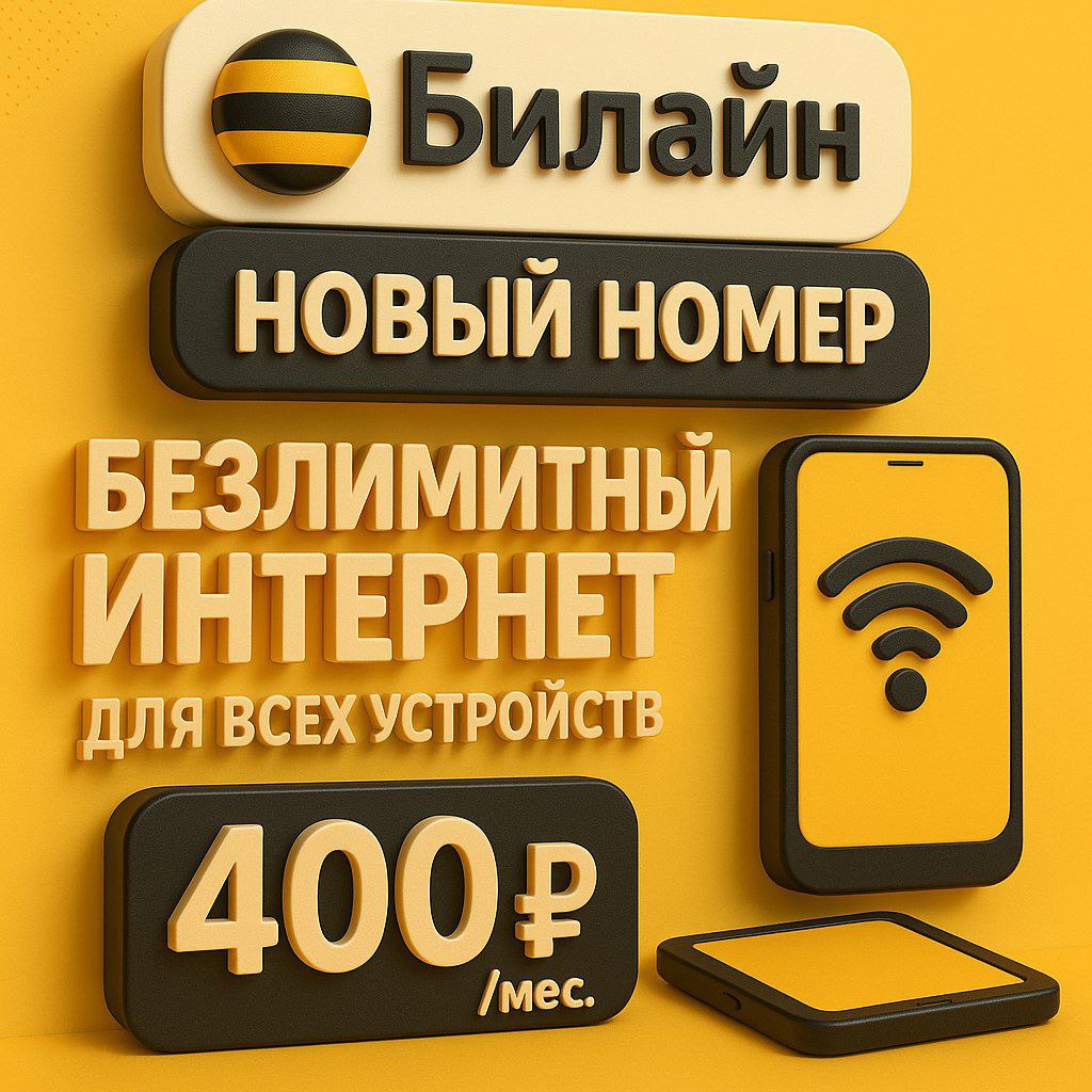 Новая сим-карта 💻 Работает в любом устройстве 🌐 Безлимитный интернет 🛜 Wi-Fi раздача интернет 💳 400 р/мес 📦 Получение в офисе Билайн