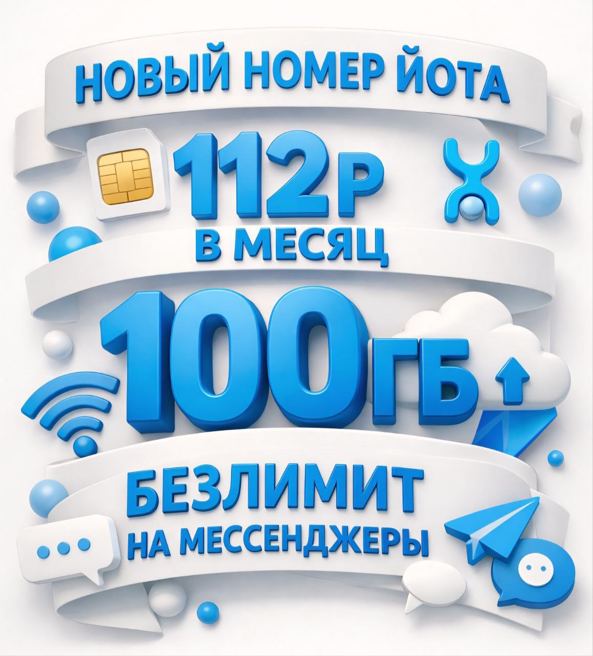 Новая сим-карта 💳 112р/мес 🌐 100 Гб интернет трафика 🛜 Бесплатная Wi-Fi раздача интернет 🌐 Безлимитный интернет-трафик на мессенджеры 📦 Получение в офисе Мегафон или Йота
