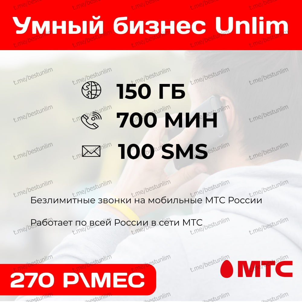 💬 Новый номер МТС 📞 700 минут на все сети России 📞 Безлимитные звонки на мобильные МТС РФ 🌐 150 Гб 🛜 Wi-Fi раздача интернет 📨 100 SMS на все номера России 🔥Перенос остатков минут, Гб, SMS 🔒Умная защита МТС от спам-звонков
