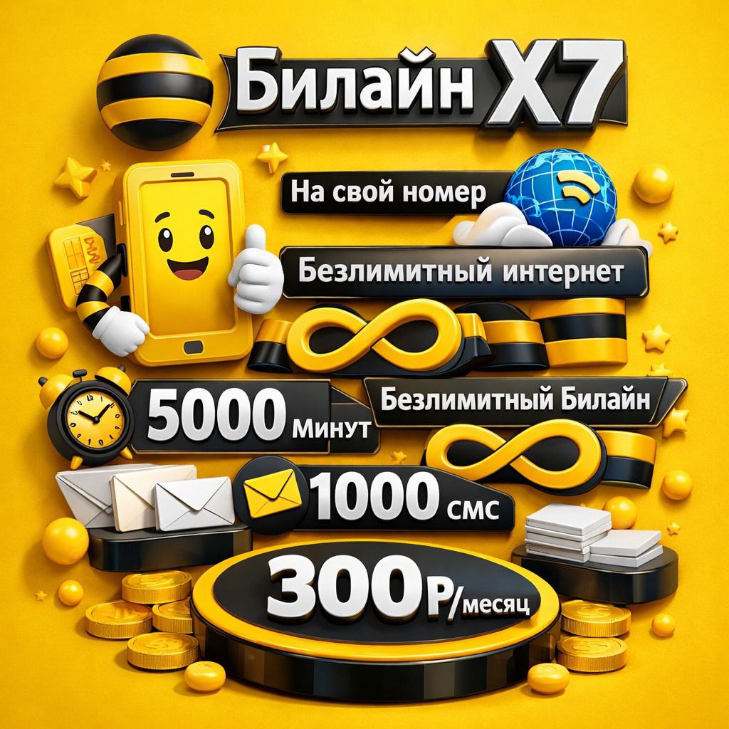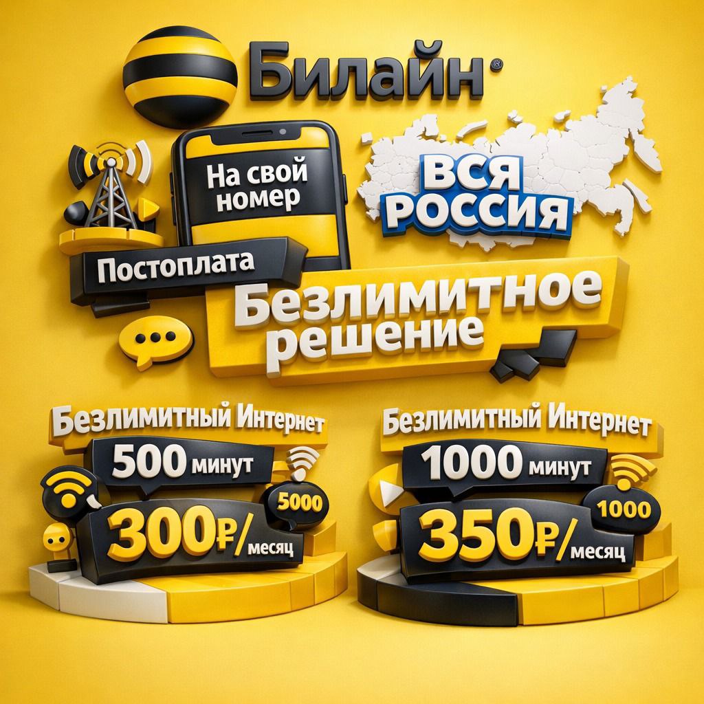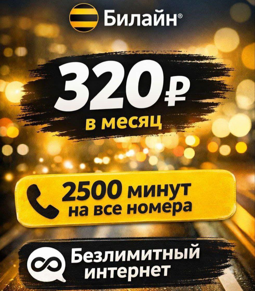 🟡 Подключение на ваш номер Билайн 💳 300₽/месяц 📞 Безлимит. звонки на Билайн 📞 5000 минут 📨 1000 смс 🌐 Безлимитный интернет 🛜 Wi-Fi раздача интернет