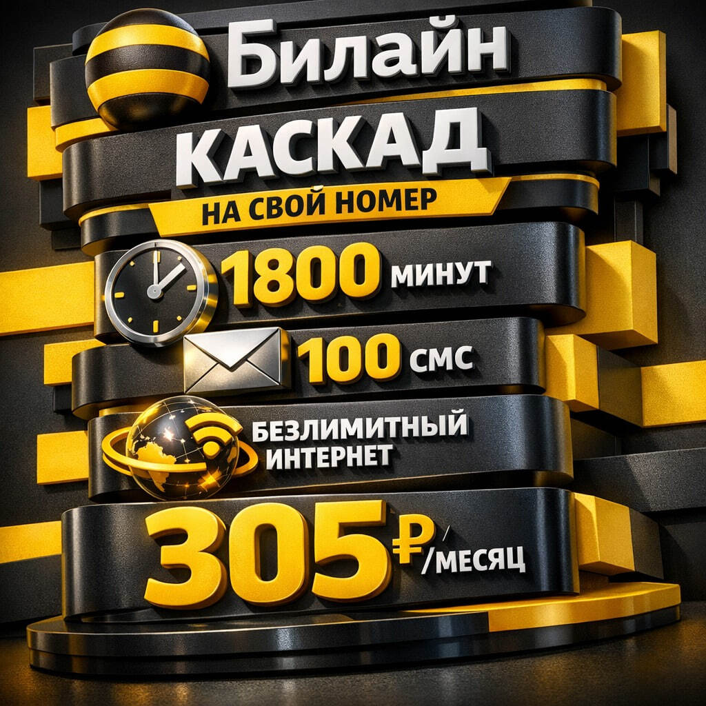 Подключение на ваш номер Билайн 💳 305 р/мес 📞 1800 минут 🌐 Безлимитный интернет 📨 100 смс