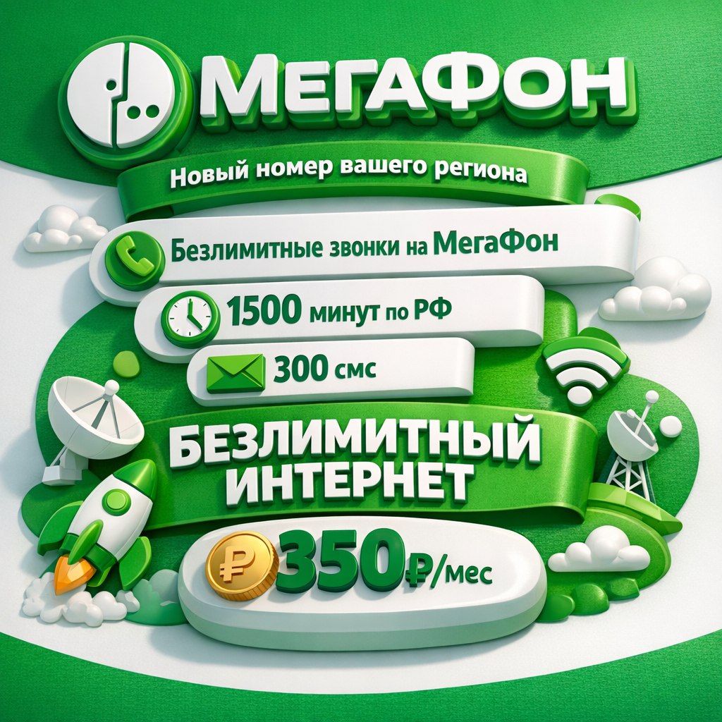 📲 Только новая сим-карта 💳 350р/мес 📞 1500 минут 🌐 Безлимитный интернет 📡 Раздача интернета ✉️ 300 SMS 📦Получение в салоне Мегафон